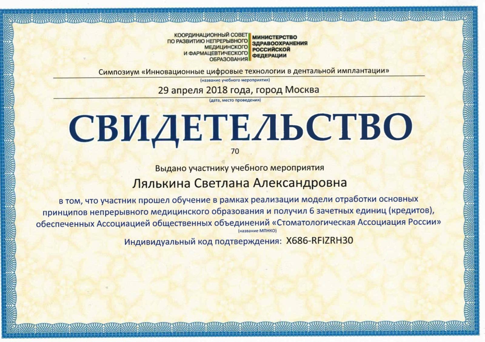 2016-Сертификат микрохирургия пародонта. Менеджмент мягких тканей.